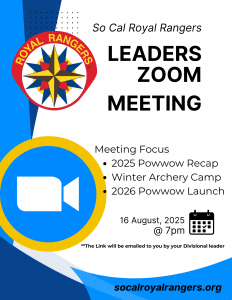 Join us for a online gathering on Saturday August 16th and 7pm via zoom. The link will be sent out by your divisional leaders prior to the meeting.